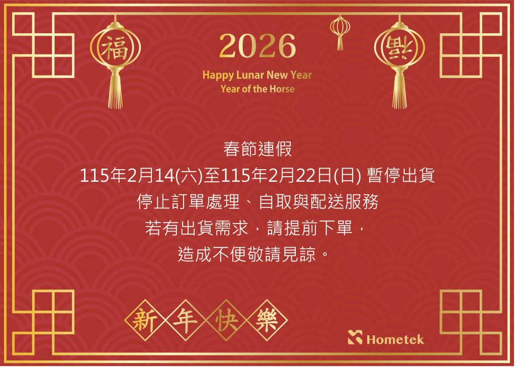 春節連假,115年2月14日至115年2月22日,停止訂單處理,自取與配送服務,若有出貨需求,請提前下單,造成不便敬請見諒!